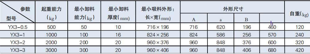 YX3 產品主要技術參數
